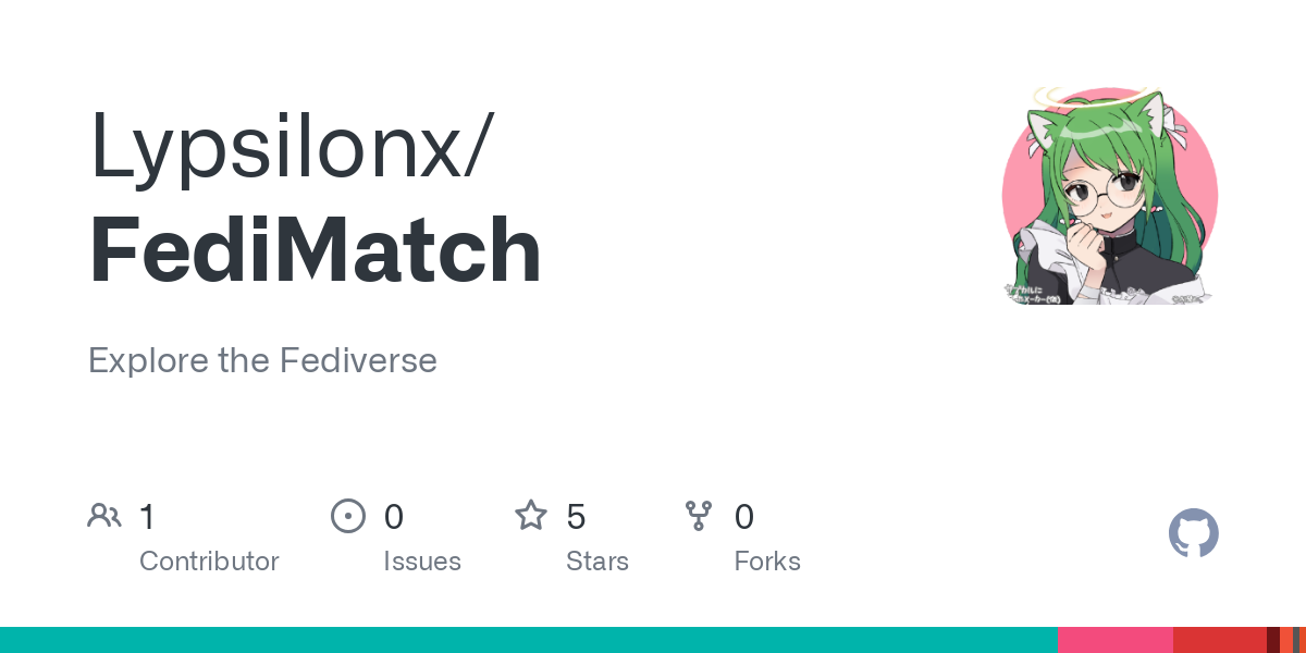 crediblethreat@scribe.disroot.org to Fediverse@lemmy.worldEnglish · 2 years agoFediMatch: Explore the Fediverseplus-squaregithub.comexternal-linkmessage-square2fedilinkarrow-up11arrow-down10